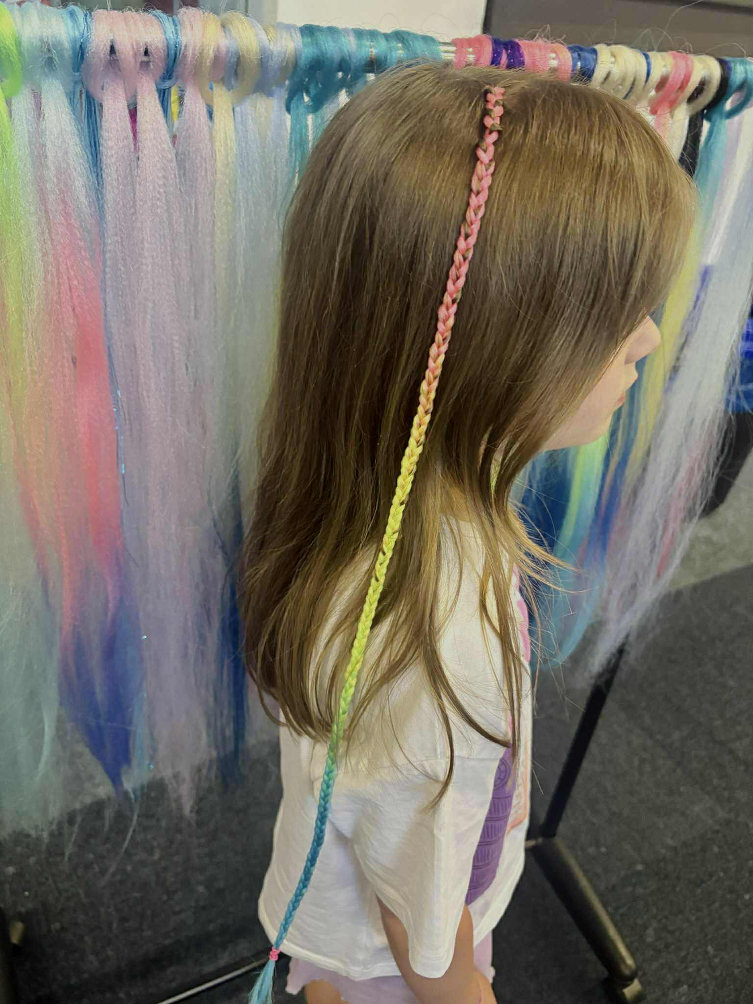 Nasza usługa zaplatania kolorowych warkoczyków z włosów syntetycznych to świetna atrakcja dla dzieci podczas imprez urodzinowych, animacji w sali zabaw, a także jako wyjątkowa stylizacja na wakacje, festyn czy szkolne wydarzenie.